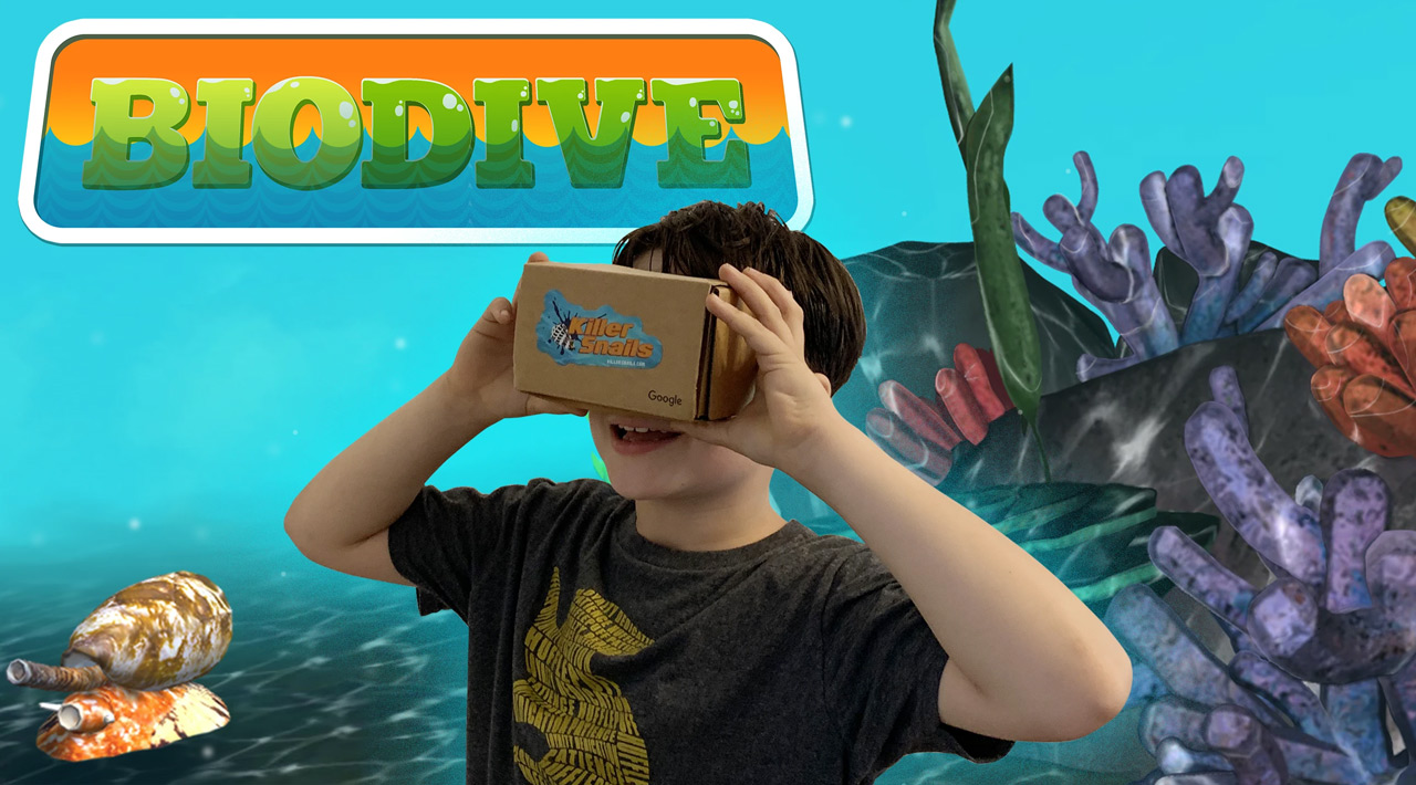 BioDive is an immersive dual virtual reality/digital experience where middle school students are marine biologists investigating the delicate ecosystems of venomous marine snails. Throughout their expedition, students observe, discover, and hypothesize about abiotic and biotic factors that impact marine biodiversity.
